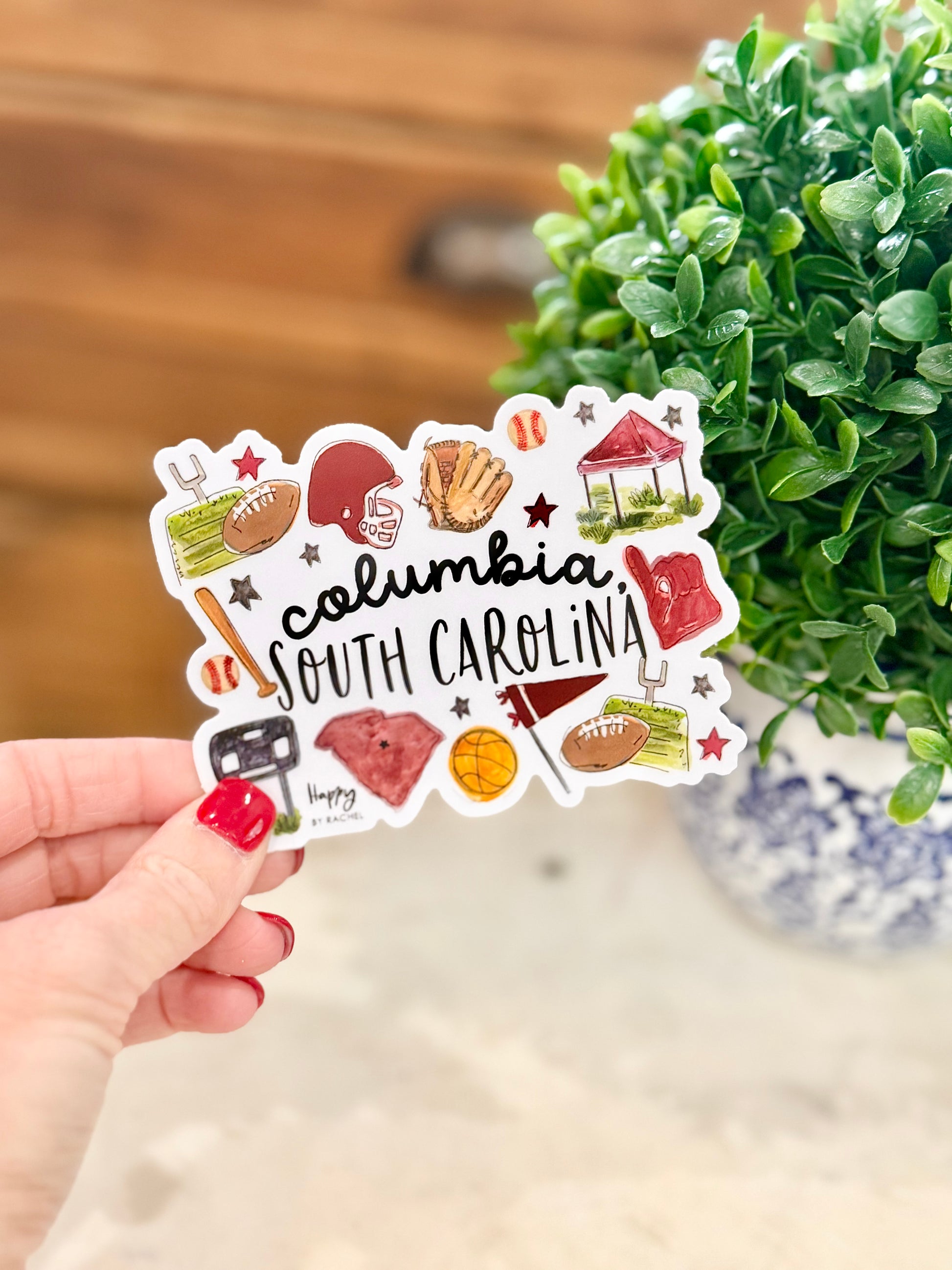 Vinyl Sticker representing a multi sport design in Columbia, SC! Measures 4x3. Waterproof. Perfect for laptops, water bottles, and more!