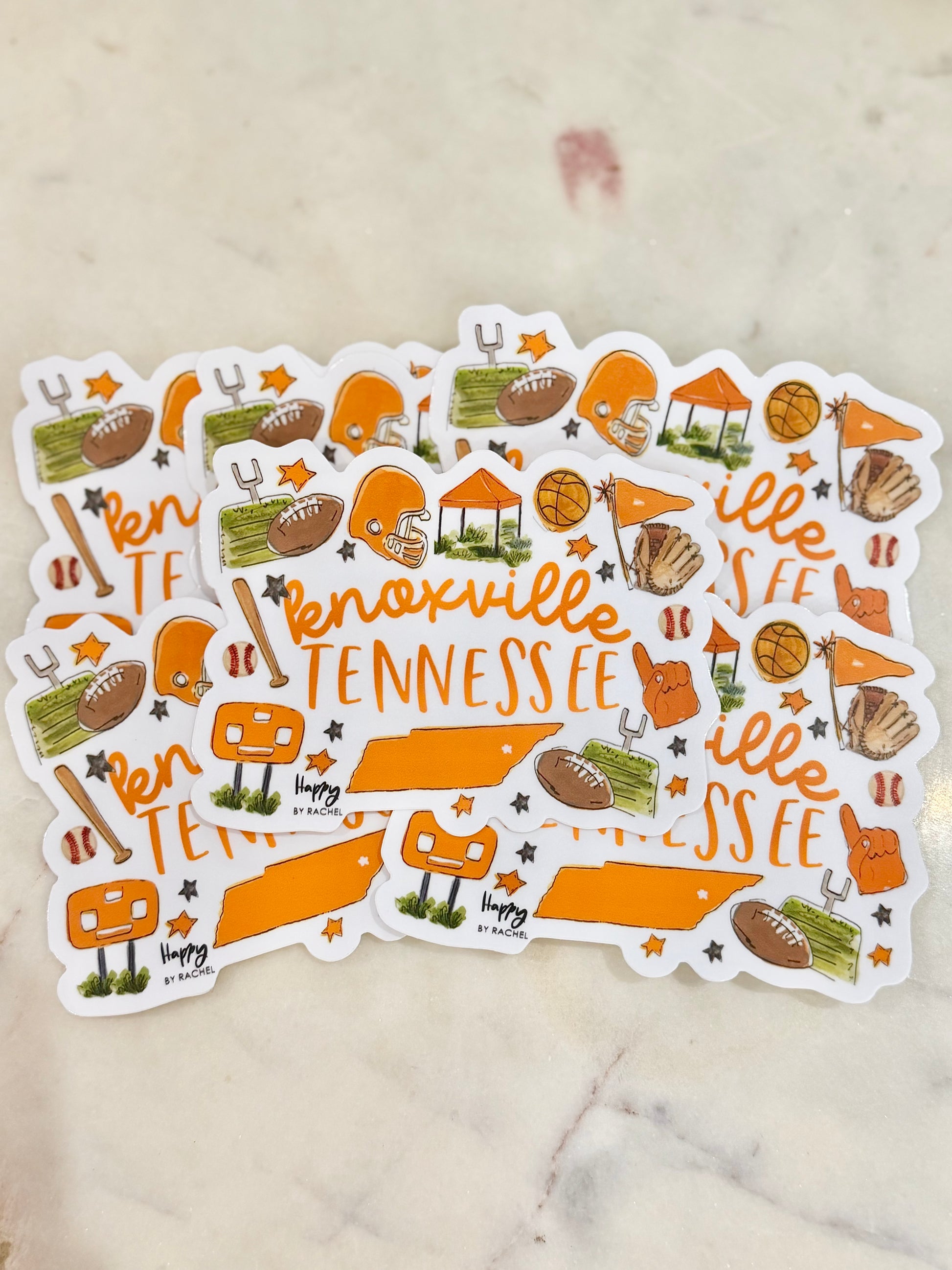 Vinyl Sticker representing a multi sport design in Knoxville, TN! Measures 4x3. Waterproof. Perfect for laptops, water bottles, and more!