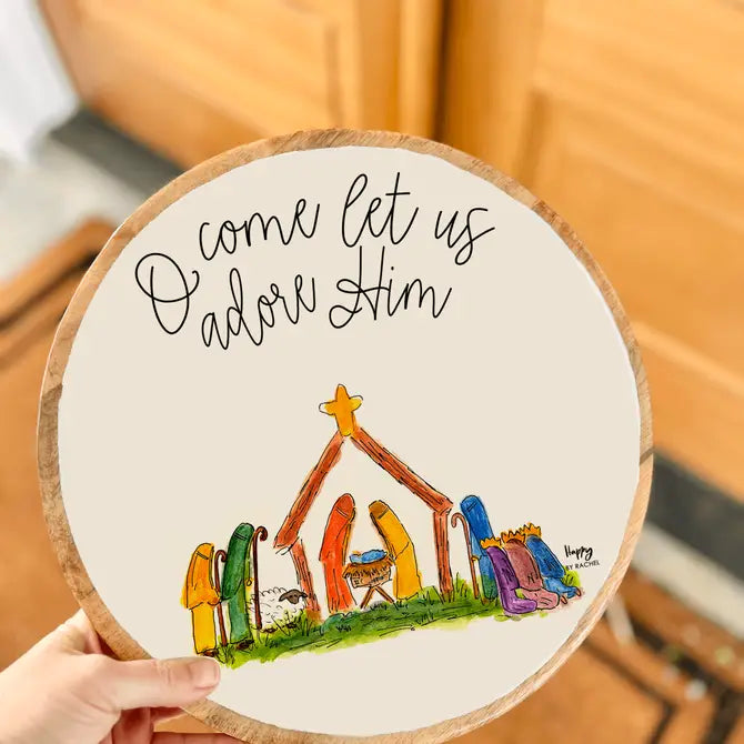 A wood and enamel trinket tray-measuring 12"-features Christmas artwork by Rachel Walker. Mango wood. Perfect for your home! Food Safe & Handwash Only.
